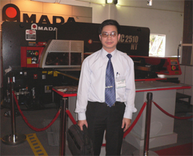 Giám đốc DTK Consulting đứng trước cỗ máy khoan CNC hiện đại của hãng Amada, Nhật Bản, trưng bày tại Triển lãm MTA 2008. (Hà Nội, 11/7/2008) |