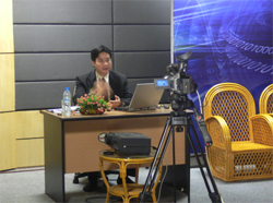 Giám đốc DTK Consulting đang giảng bài tại studio của Chương trình Đào tạo Cử nhân Trực tuyến TOPICA, thuộc Viện Đại học Mở Hà Nội (15/05/2009). |